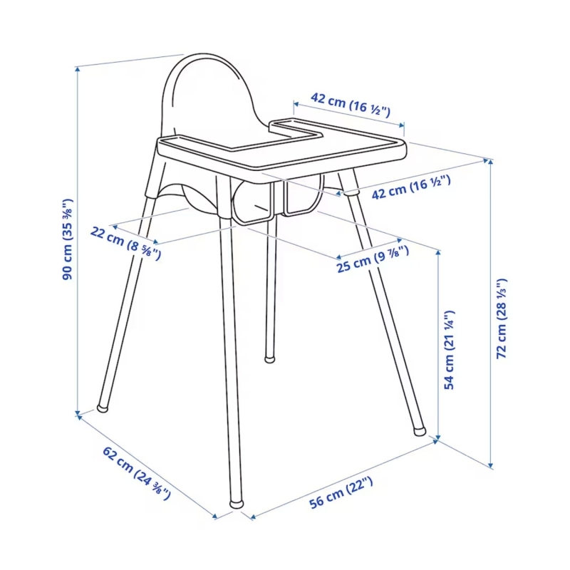 • ANTILOP highchair is easy to take apart and bring along so your child sits safely and steadily whether you are at home, at your friend’s place or at the restaurant. Enjoy your meal!
