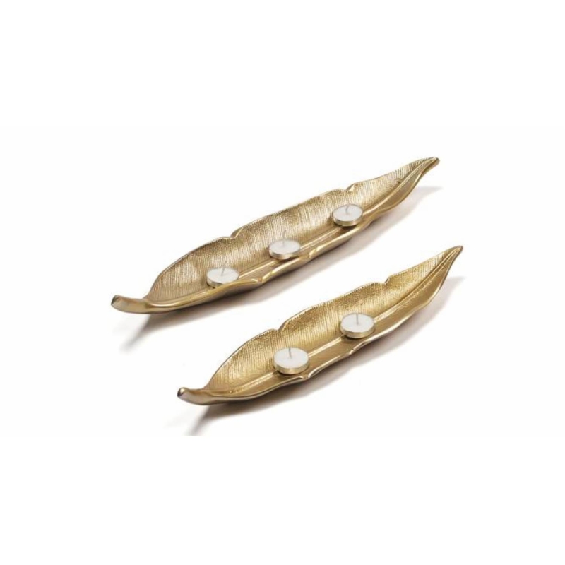 • Name: Antique Feather Decor Dishes -Set of 2 (Gold)