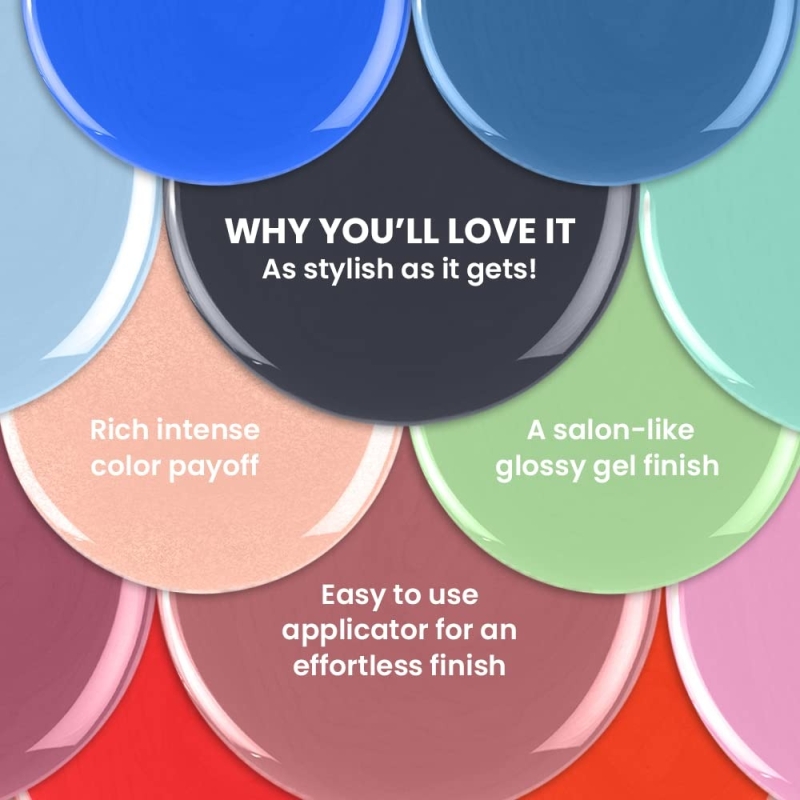 • Gel-like, glossy nails in one swipe