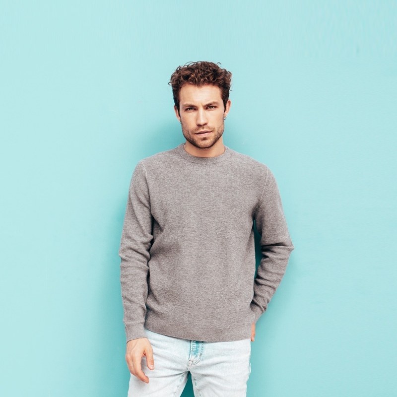 Men Grey Solid Pullover Sweatshirt
