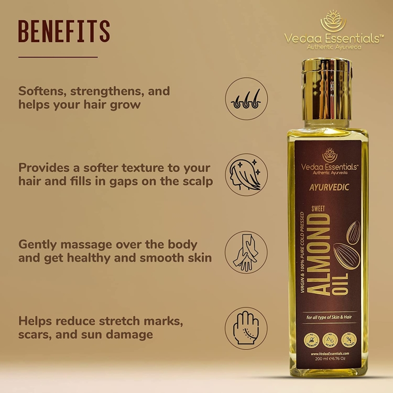 • Goodness in a Pack: Vedaa Essentials Sweet Almond Oil is a natural head-to-toe solution for skin and hair. Stop using chemicals on your skin.