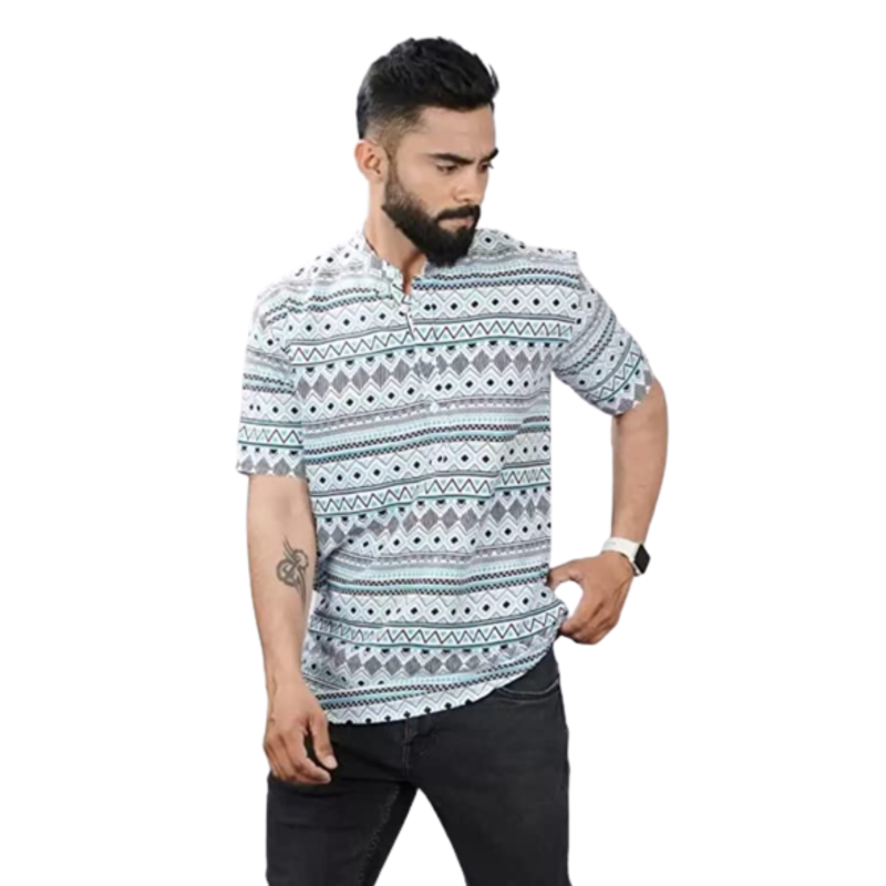 VIYAANSH Mens Animal Printed Cotton Blend Short Kurta