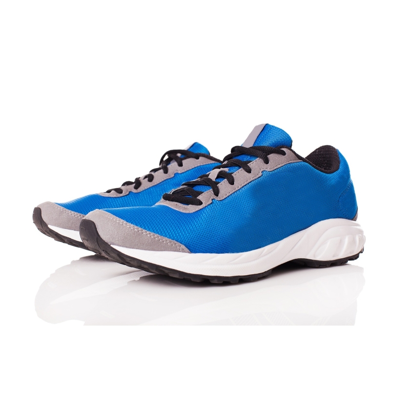 • A pair of blue running shoes, has regular Styling, lace-ups detail