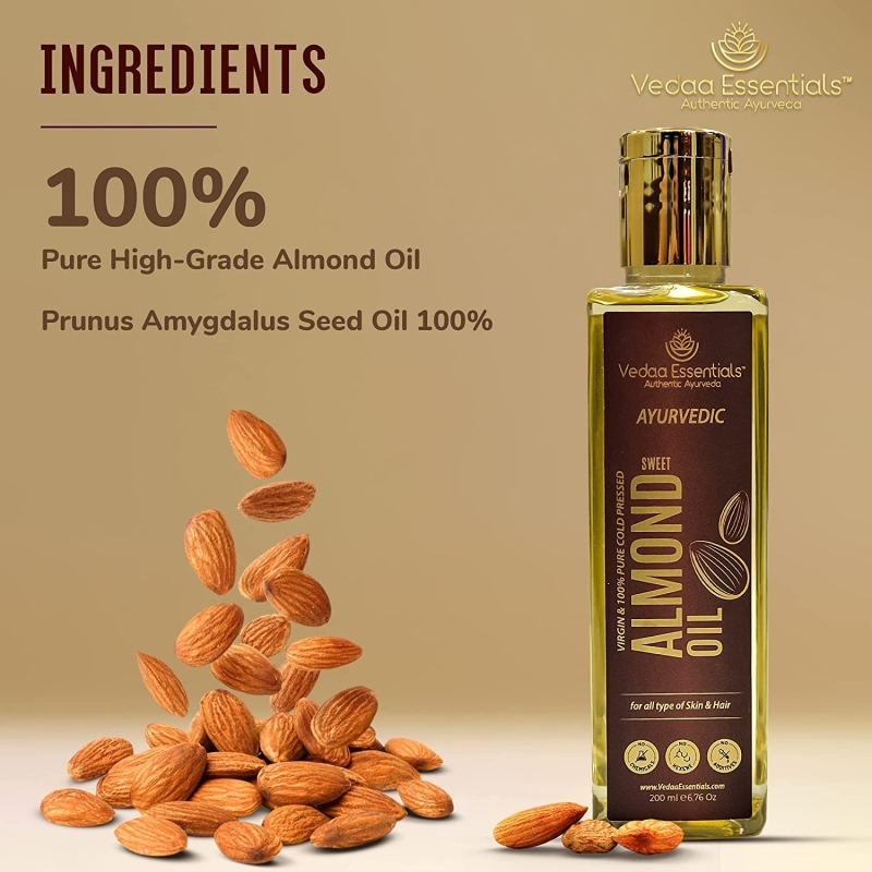 • Goodness in a Pack: Vedaa Essentials Sweet Almond Oil is a natural head-to-toe solution for skin and hair. Stop using chemicals on your skin.
