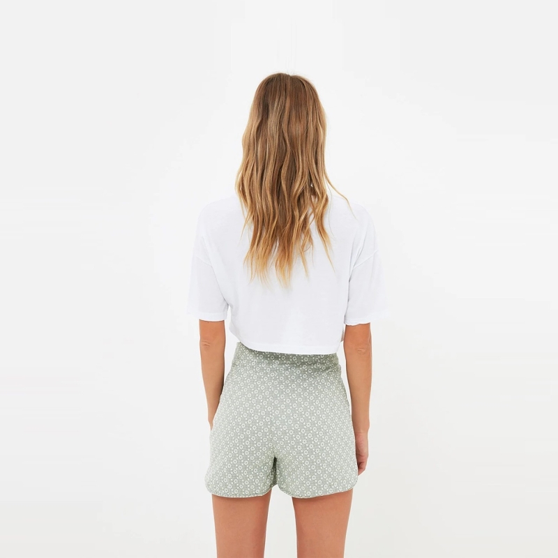 • Green printed mid-rise regular shorts, has an elasticated waistband with drawstring closure.